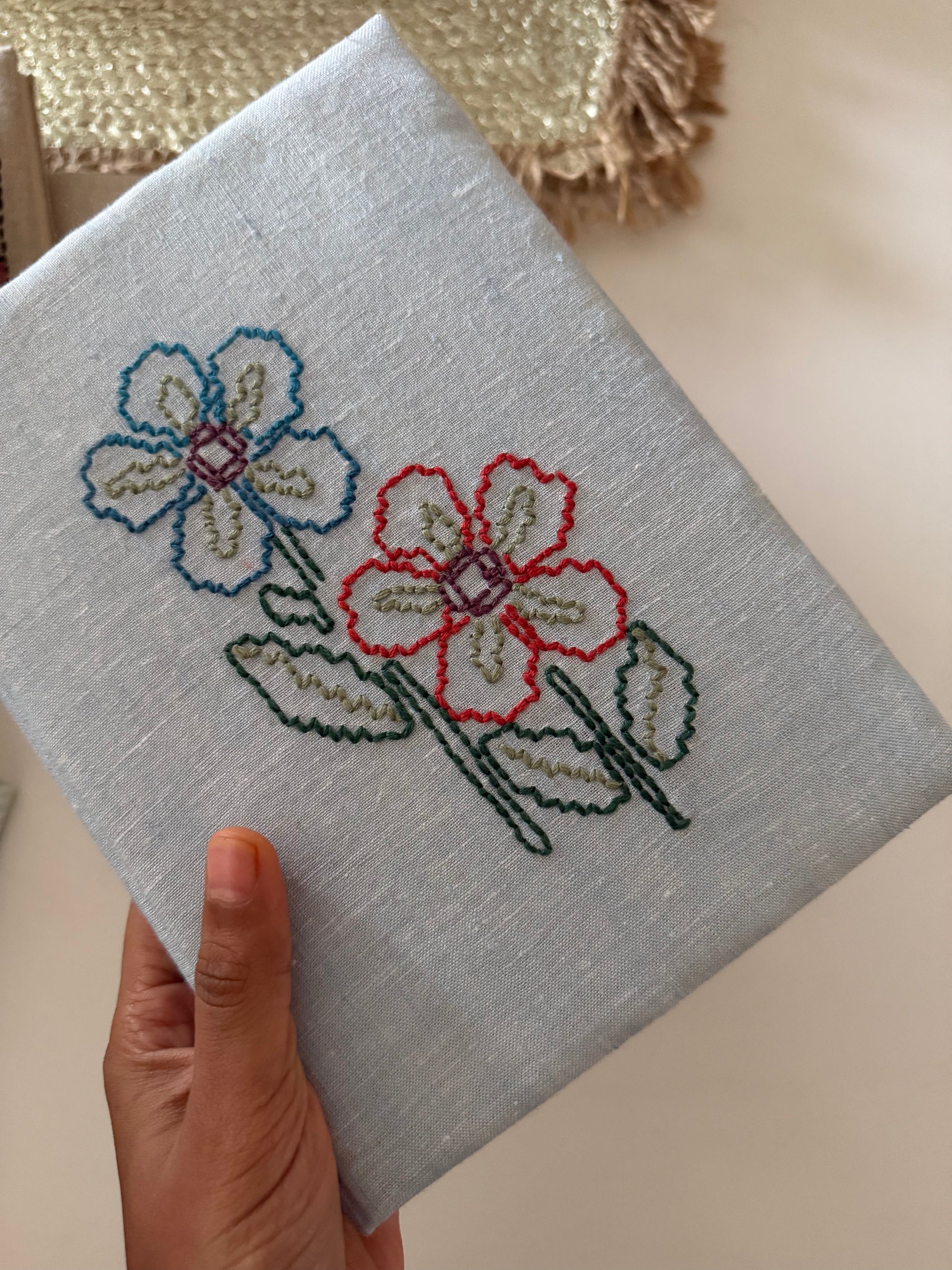 • Material: Hand-embroidered linen cover with pages made of cotton scraps